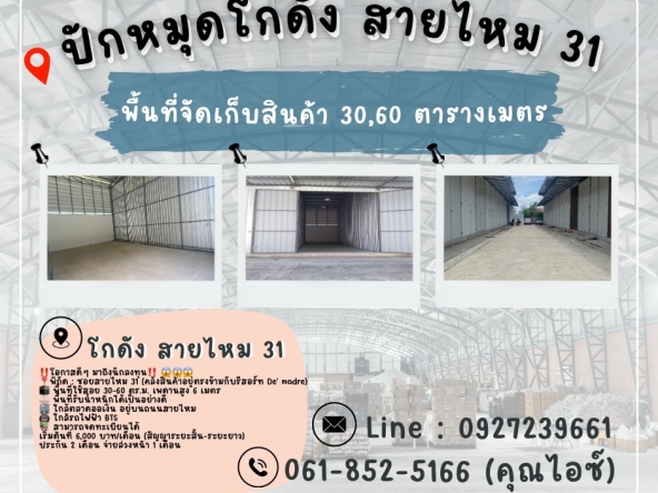 ให้เช่าโกดังขนาดพื้นที่ 25-120 ตร.ม. ราคาเริ่มต้นที่ 5,000 บาทต่อเดือน
