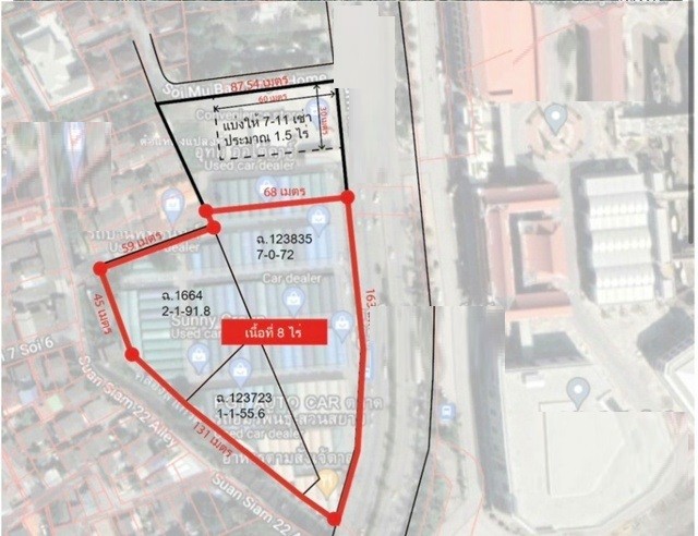 MRT Nopparat 800m. Nida University Beautiful land for rent 8rai in a community area next to the main road width 163 m. 799,999 B-M. Chapman International Bangkok 1.6 km. Suitable for investment in all businesses Bangchan Industrial Estate Bangkok 1.3 km. Easy entry and exit Ram Intra-Seri Thai