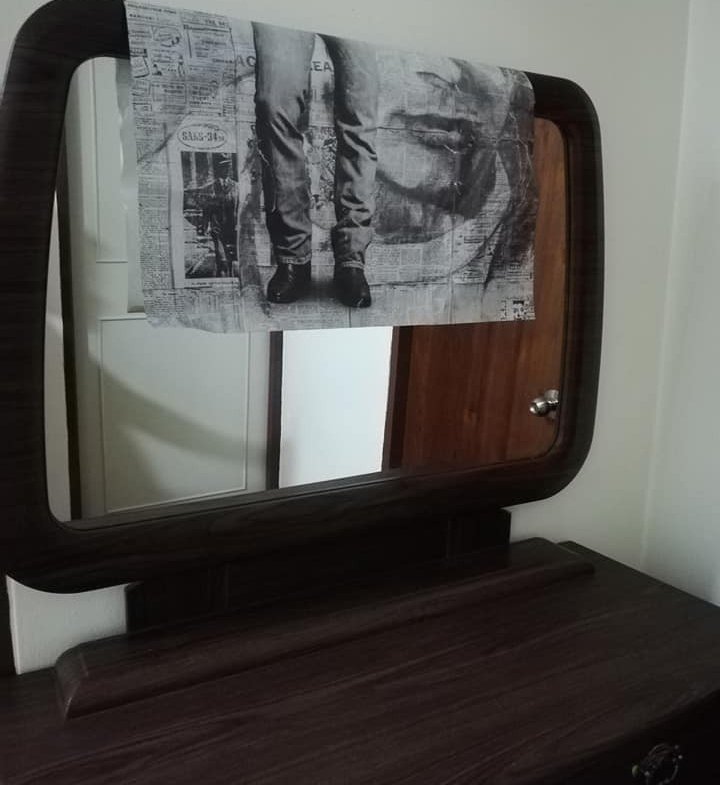 Rent house with 2 bedrooms, 2 bathrooms, 1 multipurpose room, 1 kitchen, 1 living room, 1 parking space, front and back porches… with furniture including bed with mattress, wardrobe, vanity table, air conditioning, dining table, showcase, and water pump.