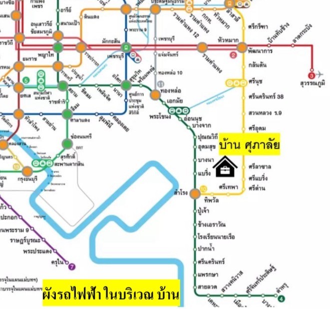 BTS สายสีเหลือง สถาณีศรีแบริ่ง ฝั่ง ถนน ศรีนครินทร์,ผ่านถนน เทพารักษ์ ลาดพร้าว จตุจักร