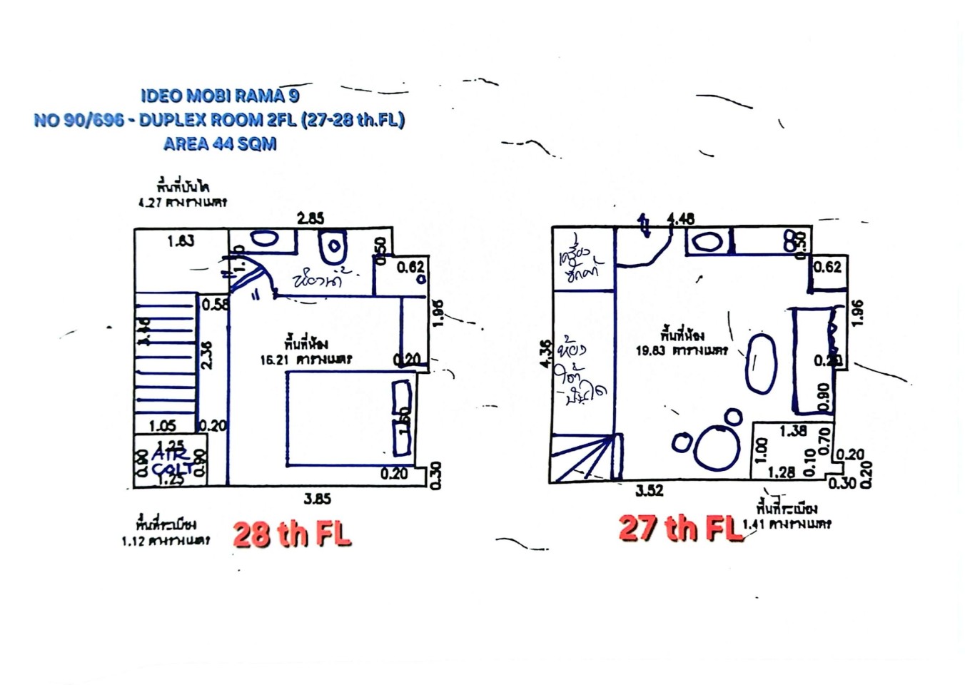 เลขที่ 90/696 ชั้นที่ 27-28 ขนาด 44 ตรม.