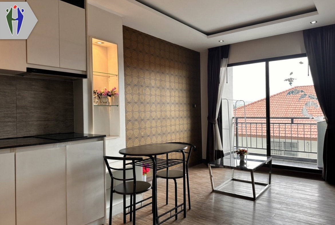 คอนโดขนาด 38 ตารางเมตร 1 ห้องนอน 1 ห้องน้ำ 1 ห้องนั่งเล่น พร้อมระเบียงกว้าง