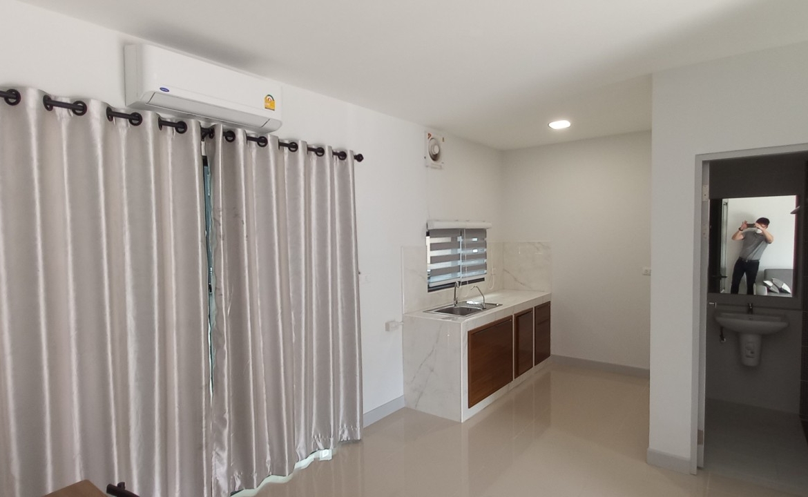 • 1 ห้องครัว พร้อมเคาน์เตอร์ + เตาไฟฟ้า + ซิงค์ล้างจาน + ปั๊มน้ำ + แทงก์น้ำ