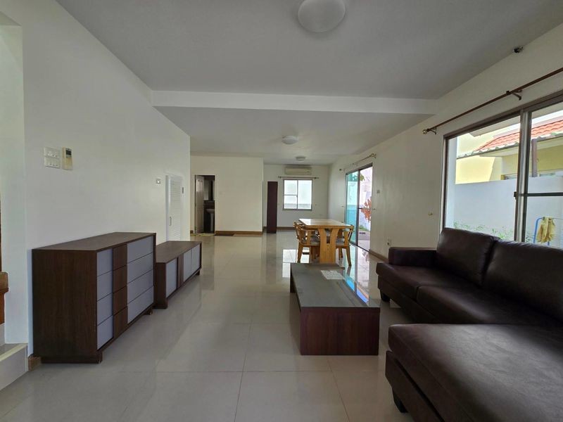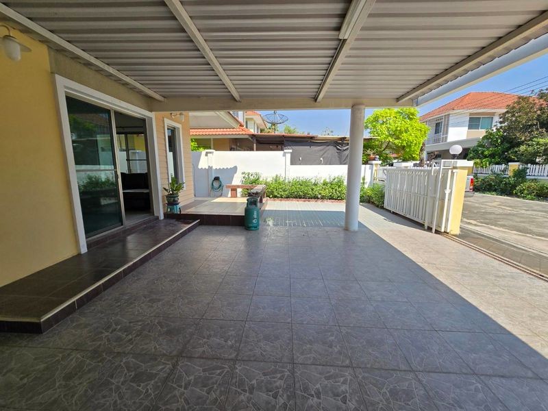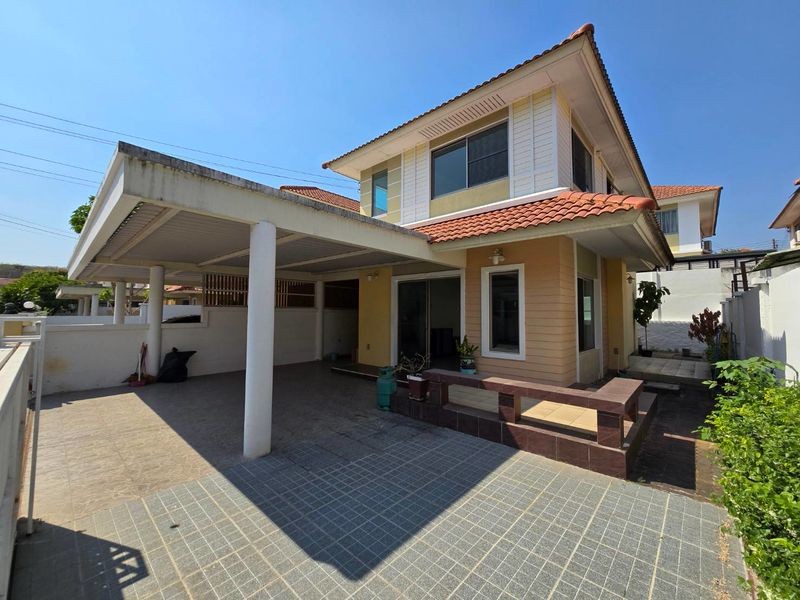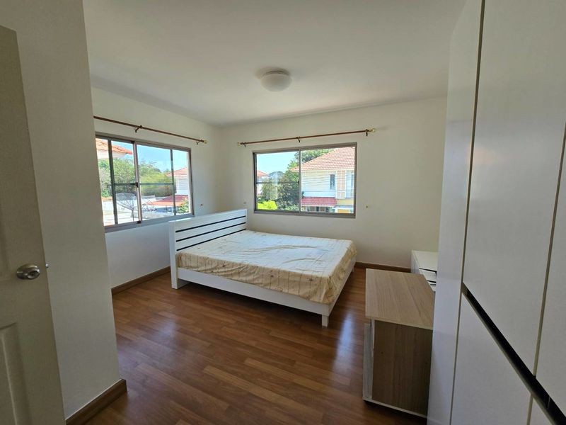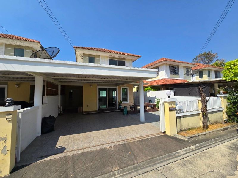 For rent: 2-story semi-detached house in House of the Canary Village, Sriracha Tiger Zoo, 42 sq wah. Beautiful house, great location, friendly neighbors, ready to move in.